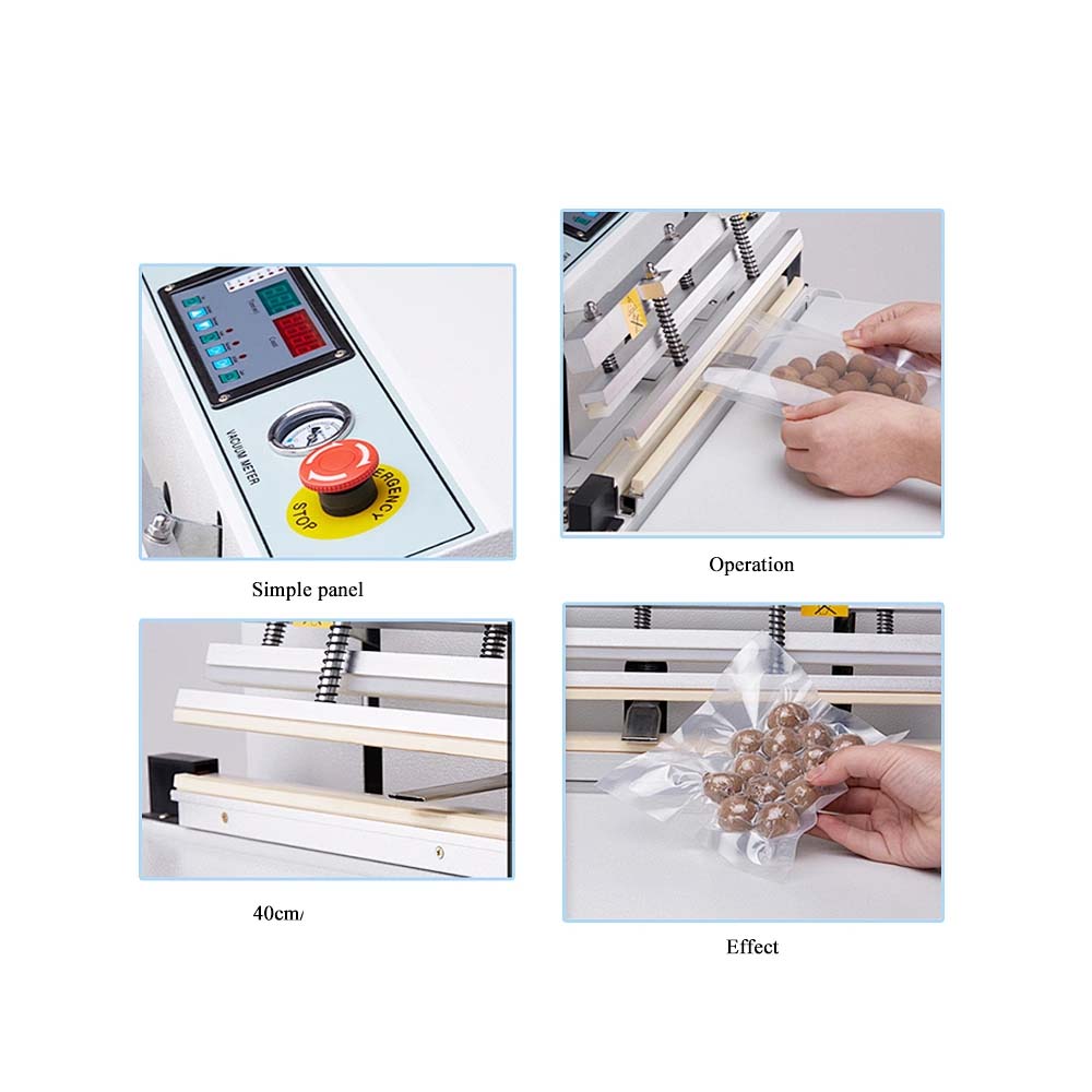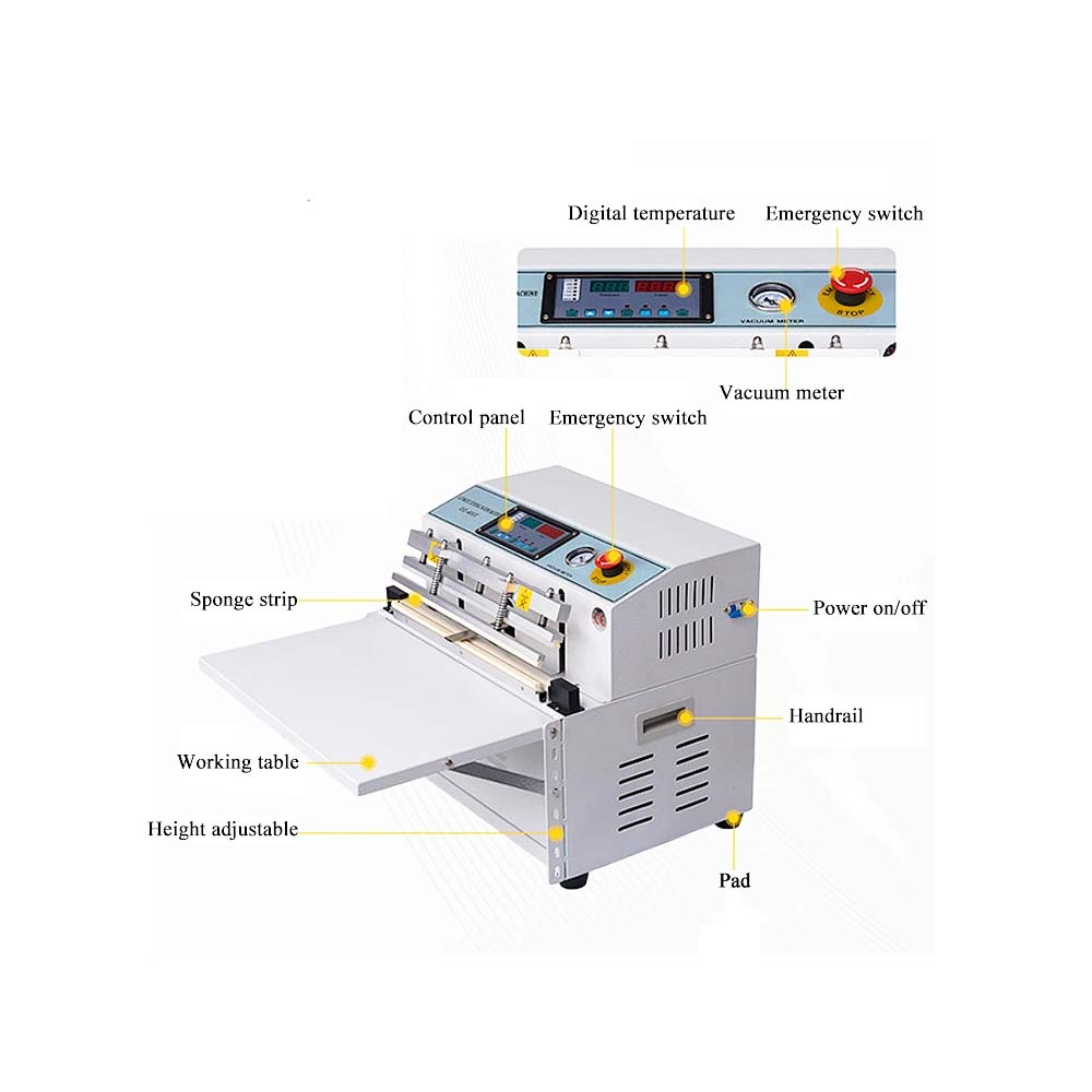 ماكينات التغليف مع سحب الهواء نظام سحب الهواء بدون حجرة ( فاكيوم خارجي ) آلة مناسبة ليتم استخدامها في تغليف الصناعات الغذائية و الأدوية و الكيميائية و الإلكترونية حيث تتميز بمنع المنتجات من الأكسدة و العفن و كذلك التآكل و الرطوبة مما يحافظ على جودة المنتج و نضارة على طول فترة التخزين